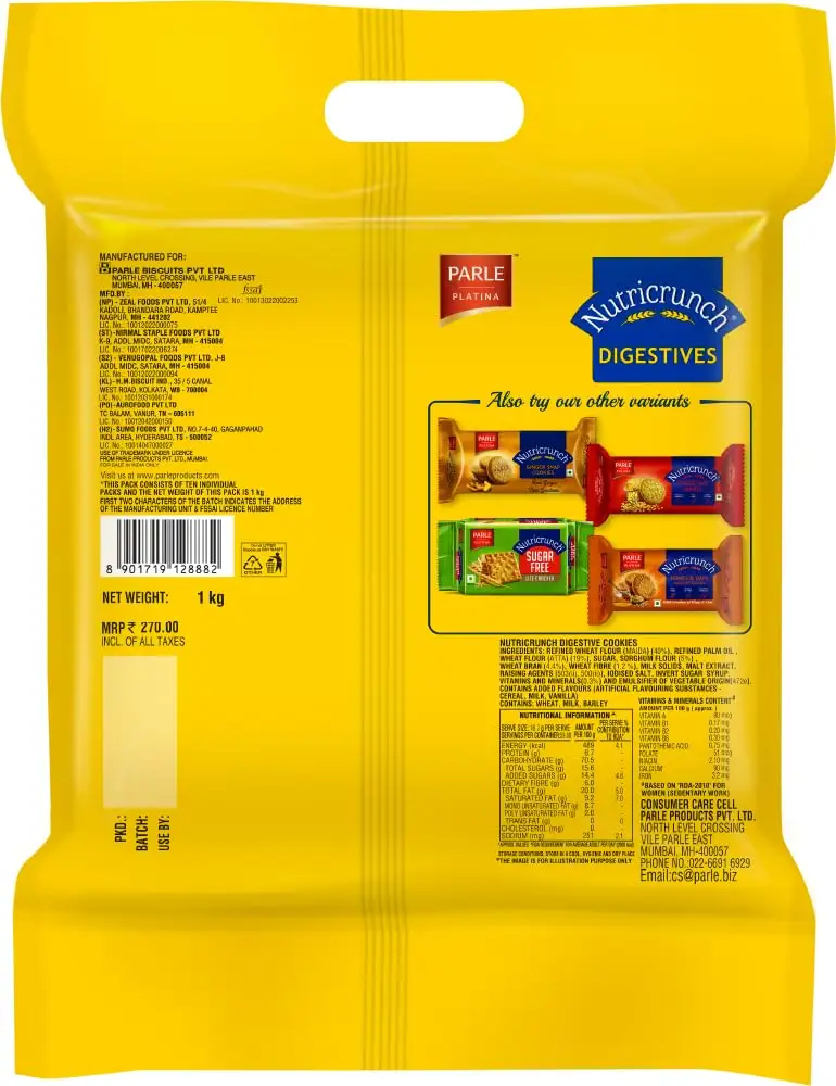 Parle Nutricrunch Classic Digestive Cookies, 1kg
